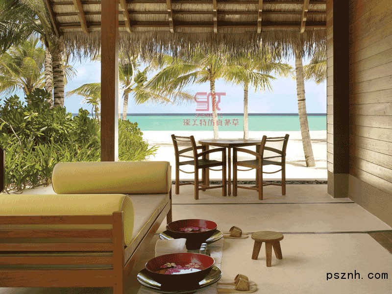 在崇尚自然,追求低碳环保的人类理想生活环境下,自然复古的原生态设计及景观众风格成为一种不变的时尚趋势。仿真铝制茅草瓦正是适应这一现代生活潮流,逐渐成为我们生活中不可缺少的装饰性建筑材料,人们在度假、旅行,休闲、娱乐时,已经越来越普遍的欣赏到这既美观又实用的园林美景。仿真铝制茅草瓦以其优越的性能和美观的装饰性,正成为海滨旅游胜地、原生态旅游度假村、温泉别墅、热带海滨旅游点等地理位置的标志性建筑装饰。体现了环保、复古、归真的主题风格。深圳市深美特茅草瓦公司根据市场需求,专业致力于仿真茅草的生产与衍生产品的开发。
